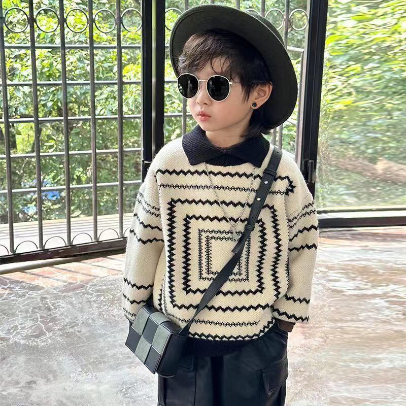 子供服 ニット セーター 男の子 レトロ 厚手 冬 春秋 襟付き ポロシャツ コットン 混紡 80cm 90cm 100cm 110cm 120cm 130cm 140cm 150cm 160cm 170cm