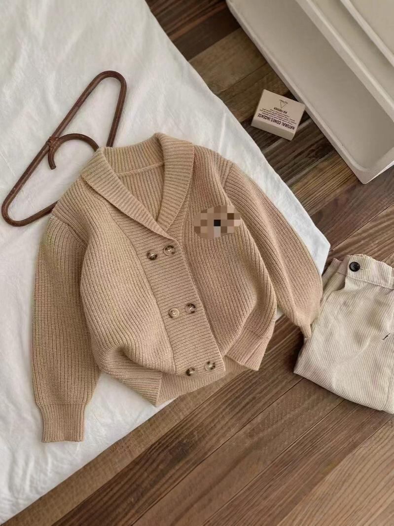 ニット カーディガン キッズ 女の子 秋冬 韓国風 ファッション ゆったり ダブルブレスト 男の子 子供 トップス 羽織り 普段使い かわいい 灰色 杏色 ブラウン ネイビー 90 100 110 120 130 140