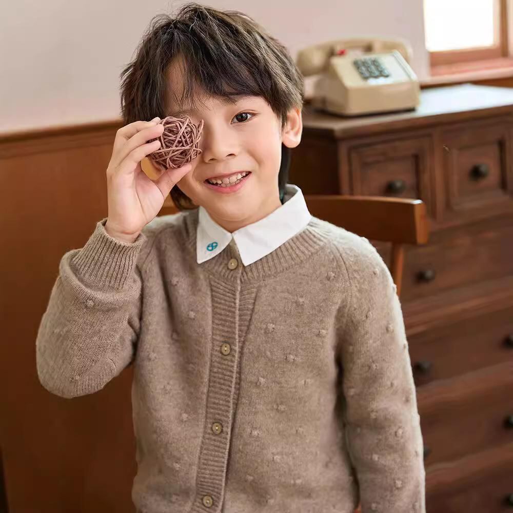 キッズ カーディガン 秋冬 厚手 ニット アウター 子供服 男女兼用 無地 カジュアル 長袖 丸首 羊毛 かわいい 90cm 100cm 110cm 120cm 130cm 140cm 150cm 160cm