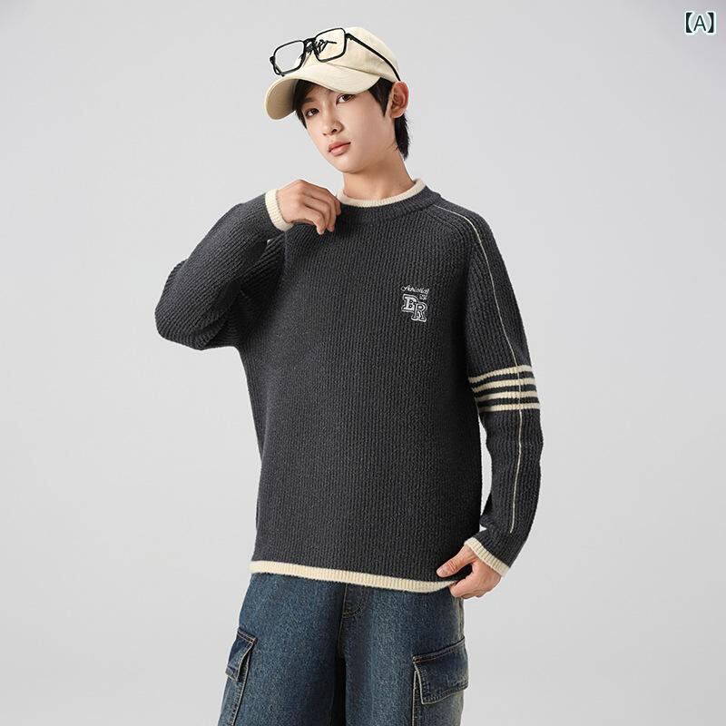 子供服 ニット/セーター 男の子 中/高学年向け ライン入り 防寒 暖かい 学生 普段使い