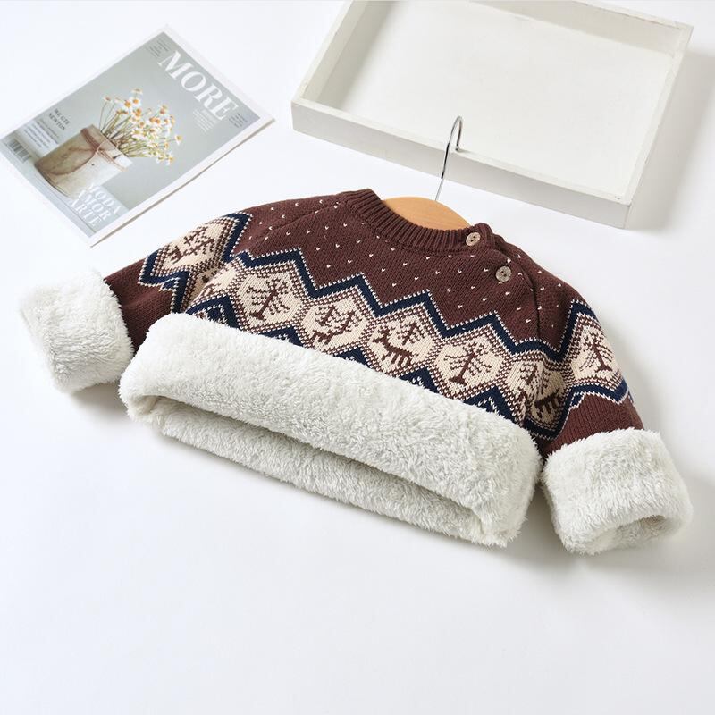 ベビー服 セーター 男の子 女の子 裏起毛 ニット トップス プルオーバー 丸首 コットン 赤ちゃん 幼児 秋冬 厚手 73cm 80cm 90cm 100cm かわいい あたたかい