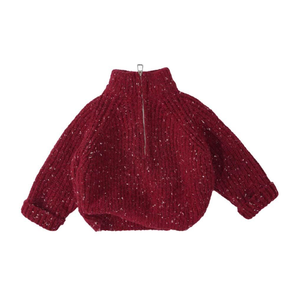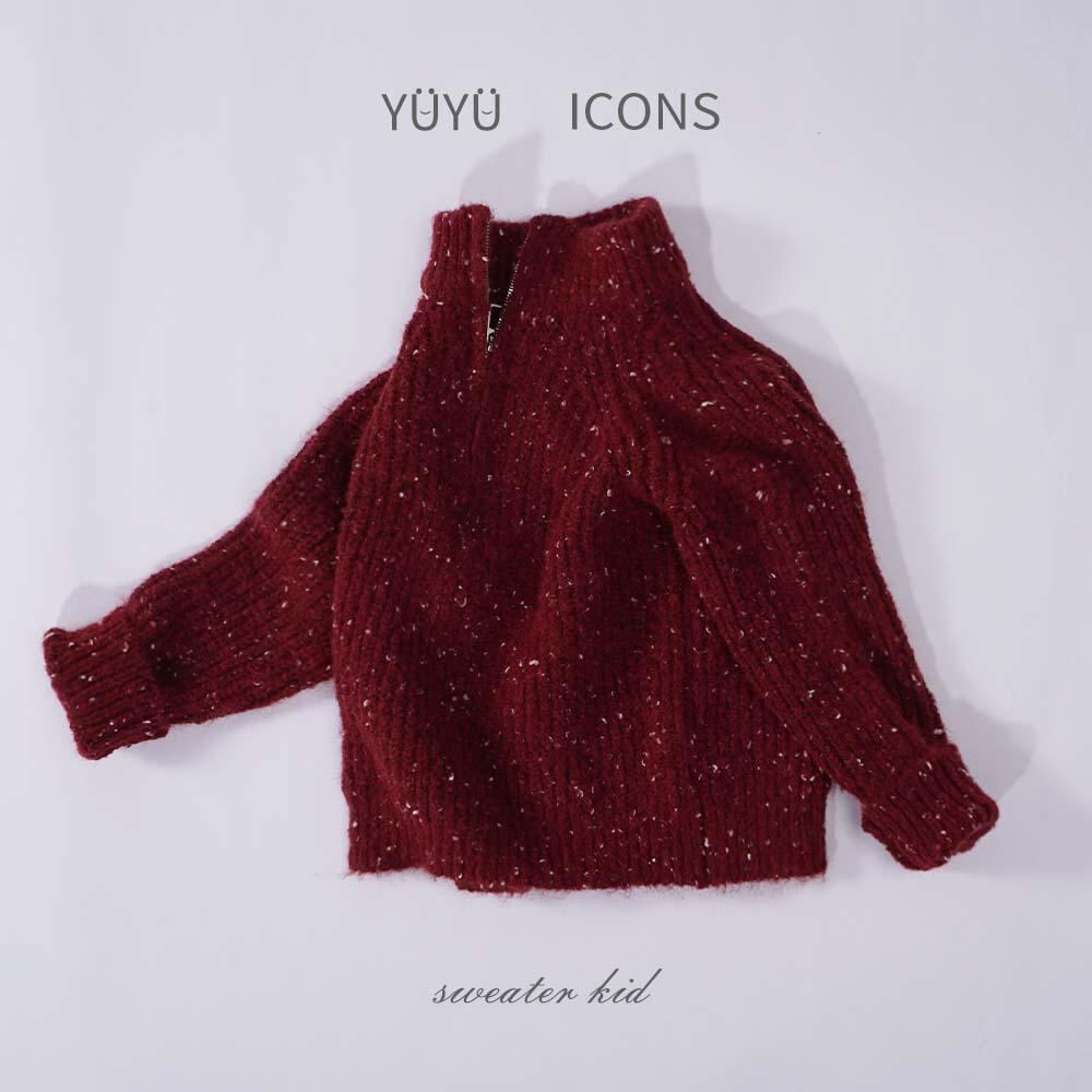 子供用ニット セーター 秋冬 女の子 トップス 長袖 ハーフハイネック 無地 赤色 かわいい 普段使い 通園 通学