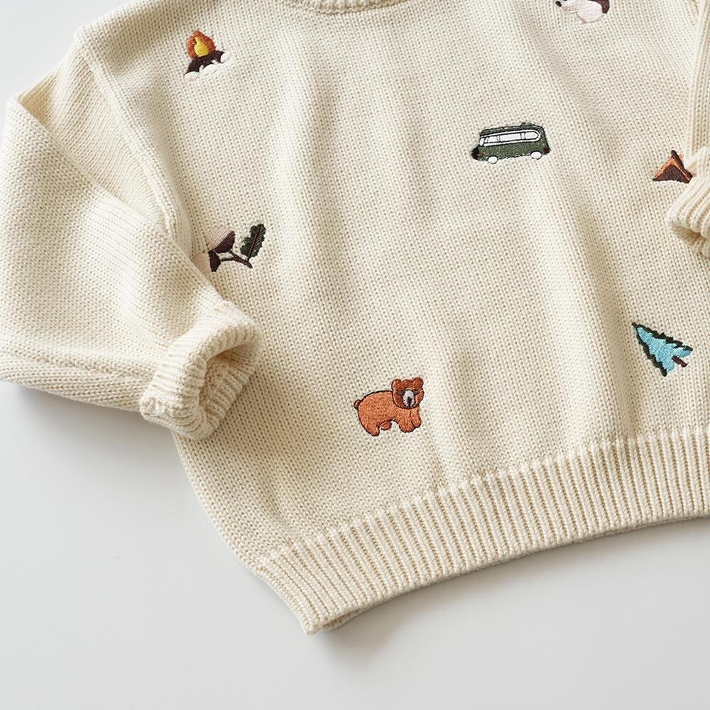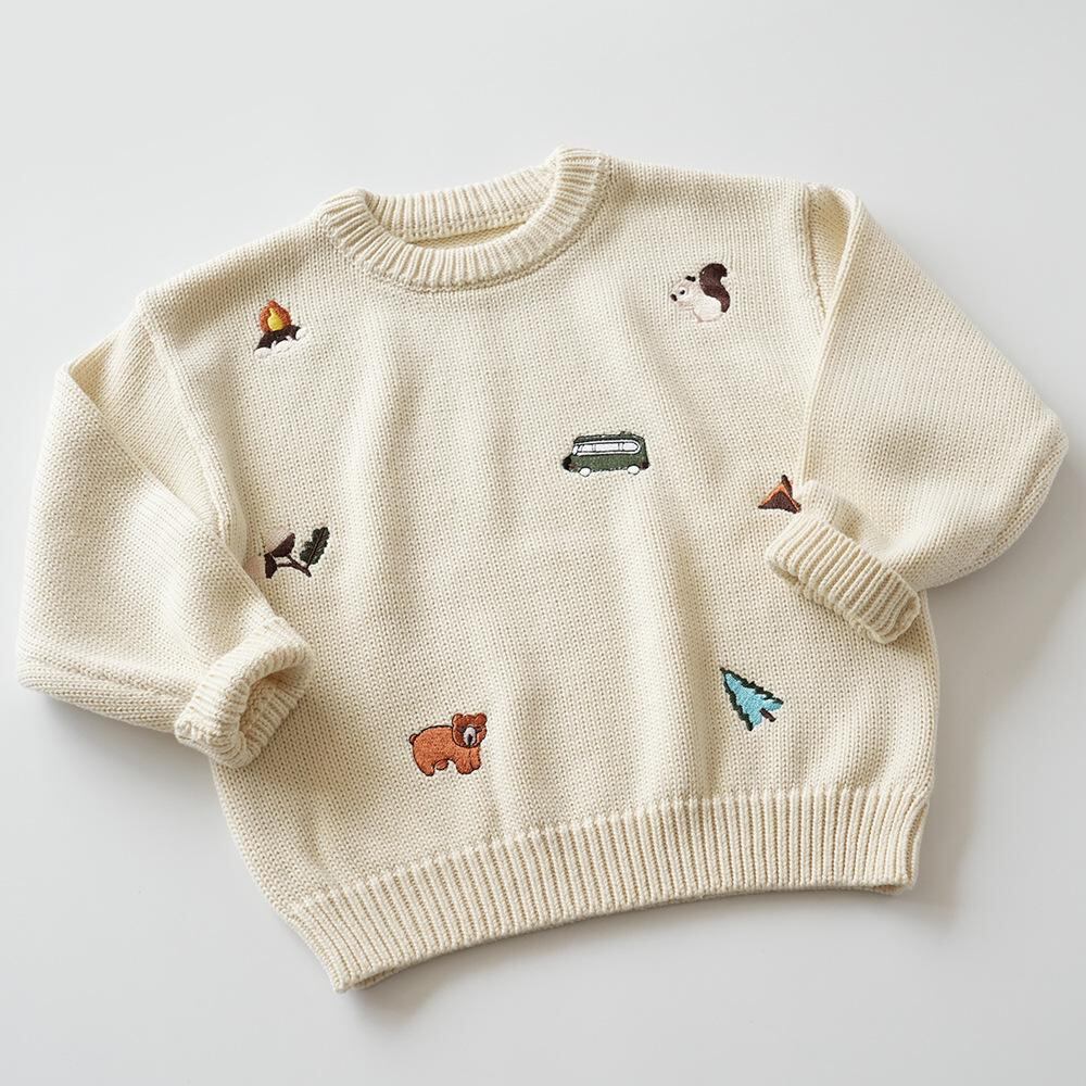 子供服 セーター 男女兼用 秋冬 春 トップス 刺繍 ニット 丸首 かわいい カジュアル 男の子 女の子 普段使い 通園 通学 100 110 120 130 140cm