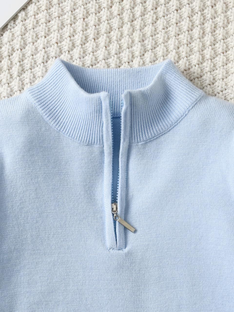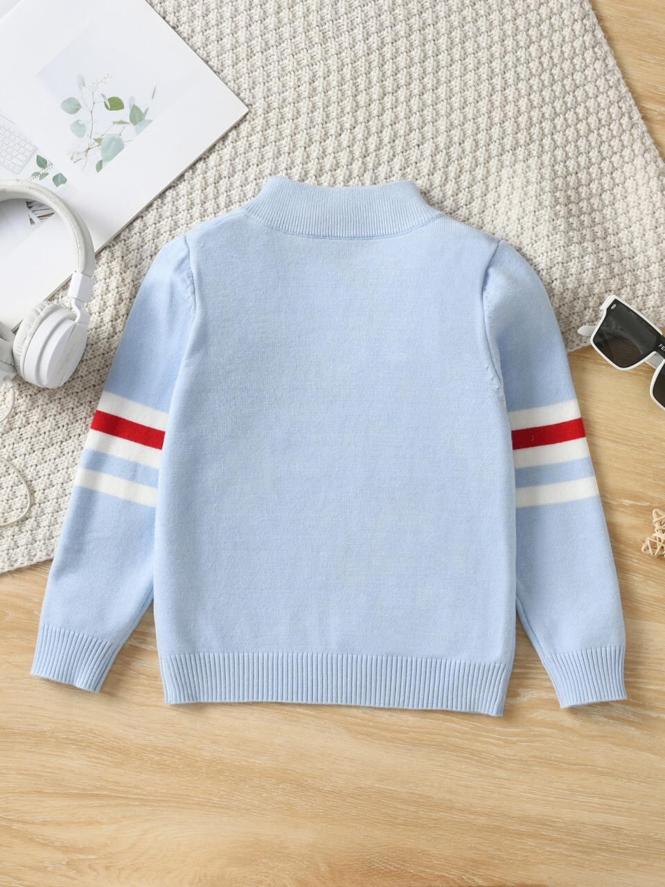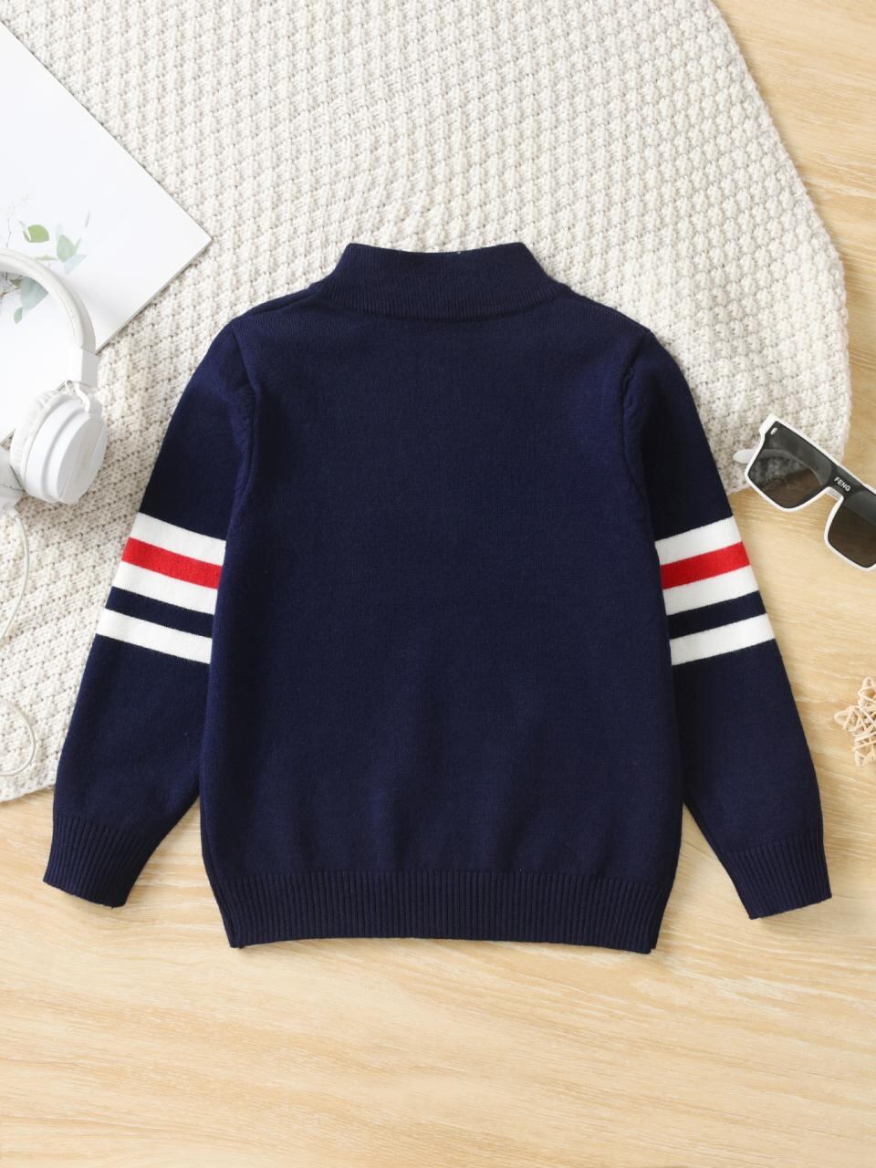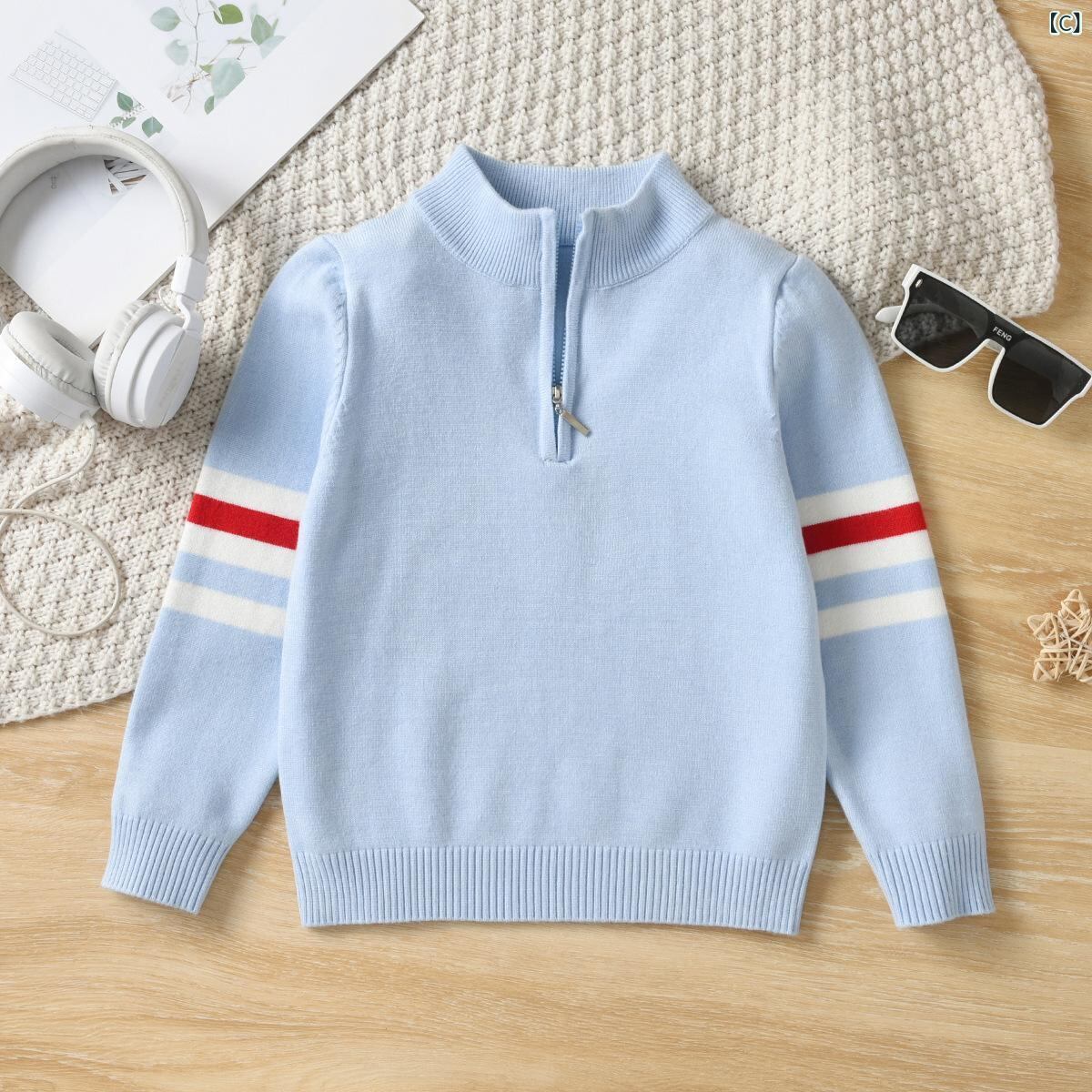 ニット 子供服 男の子 秋冬 長袖 ハーフジップ 配色 ストライプ セーター 通学 普段使い 伸縮性 100cm 110cm 120cm 130cm 140cm 150cm 160cm 紺色 グレー 青色