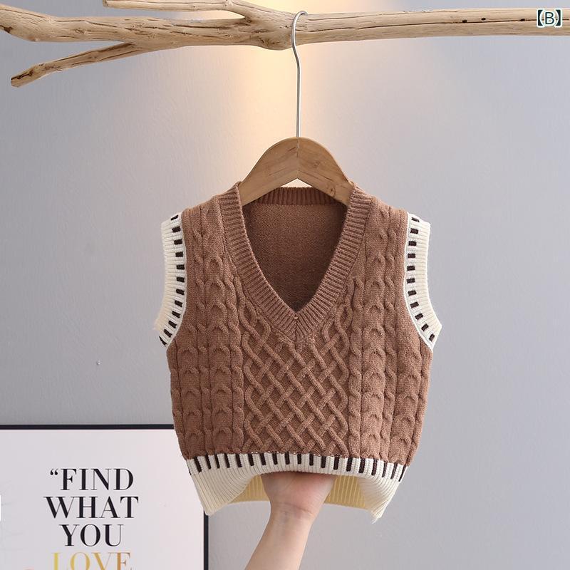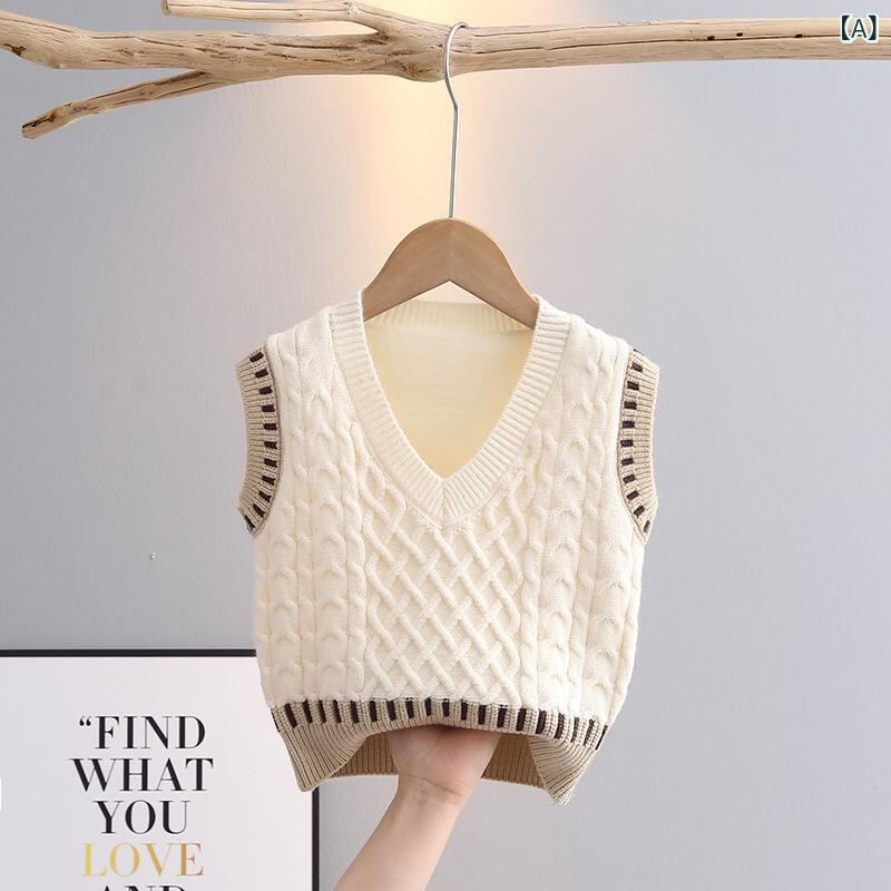 子供用ニットベスト Vネック ノースリーブ セーター 春秋 男の子 ベビー服 幼児 普段使い かわいい ベージュ カーキ