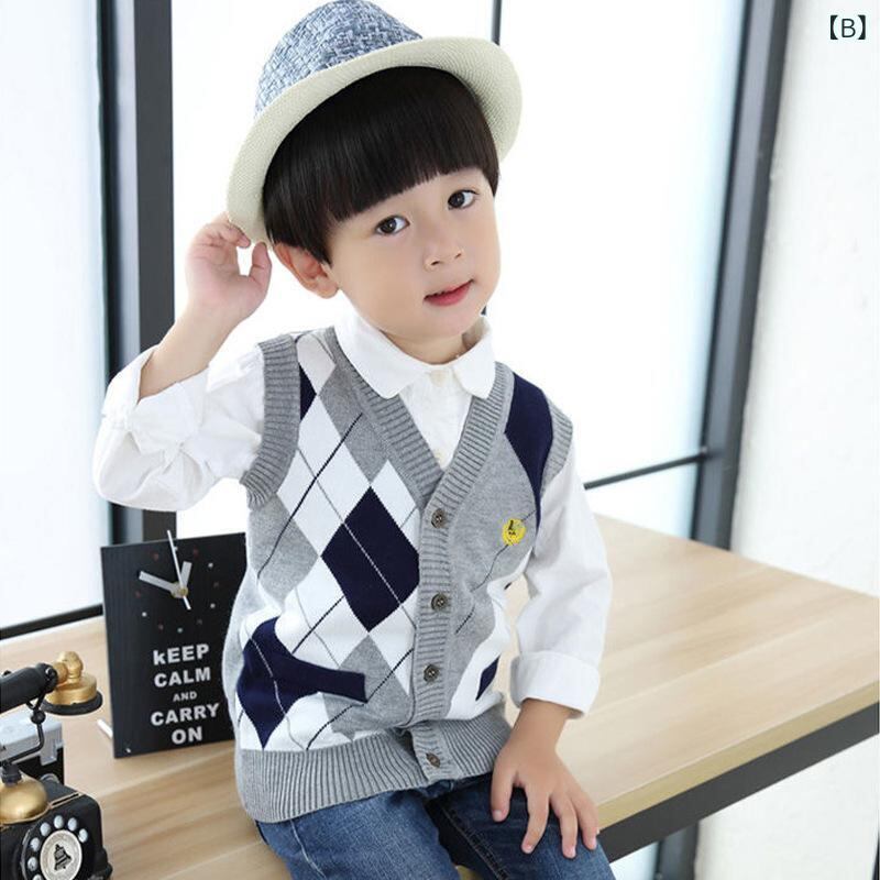 子供服 ニット ベスト 男の子 小学生 学院風 ノースリーブ カーディガン コットン セーター 秋冬 格子柄 Vネック 普段使い トップス 80 90 100 110 120 130 140 150 160 170