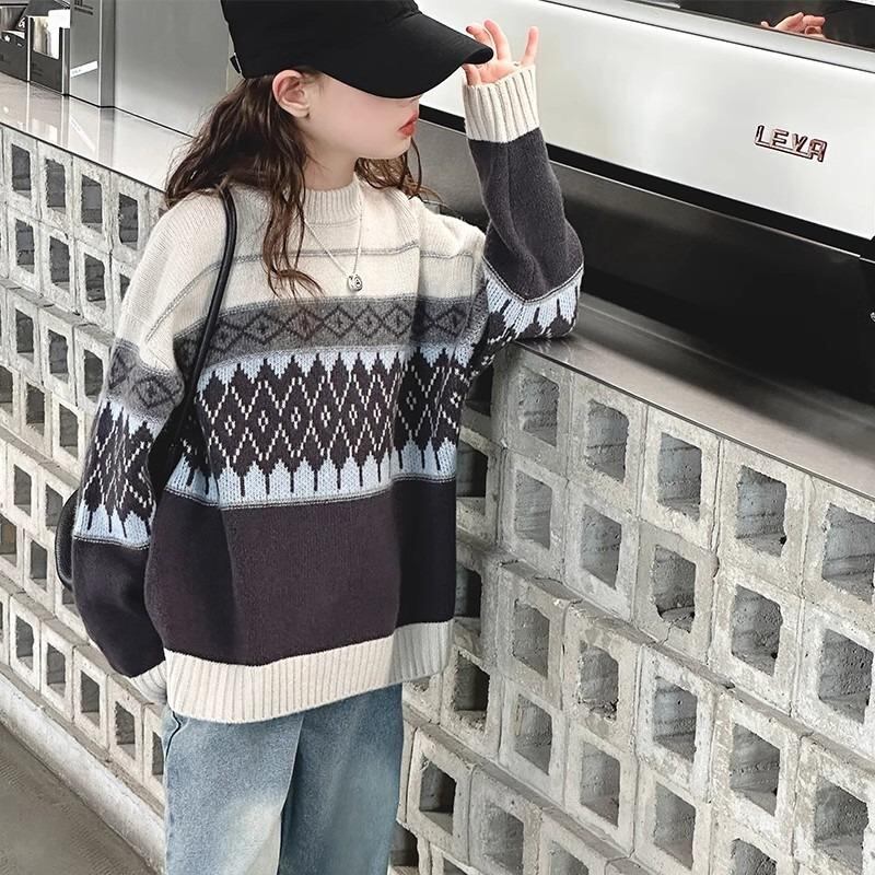 ニット キッズ 男女兼用 子供服 トップス プルオーバー ケーブル編み 菱形 秋冬 春秋 カジュアル かわいい 普段着 防寒 あったか おしゃれ