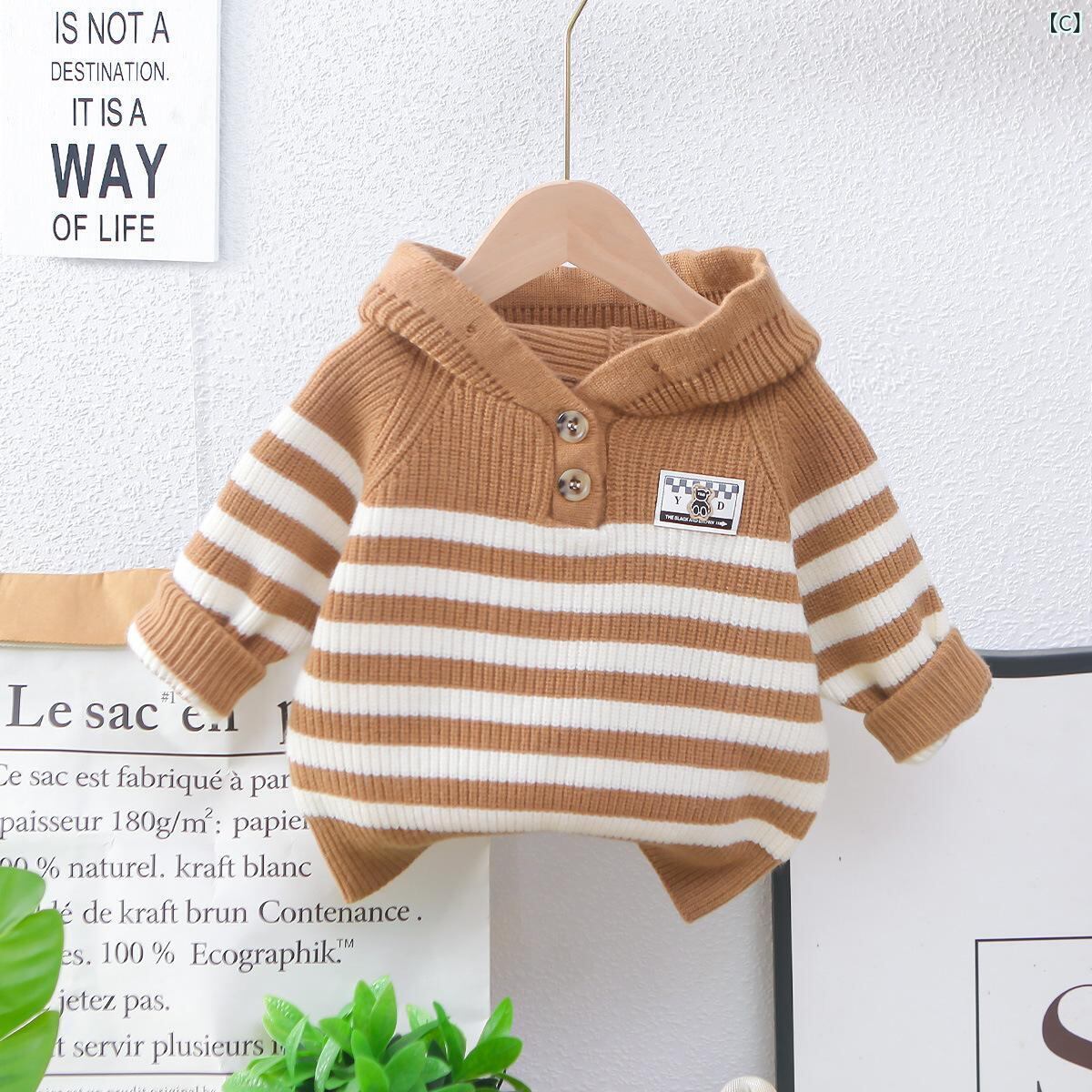 ニット 子供服 男の子 ストライプ パーカー かわいい カートゥーン 春秋 乳幼児 コットン