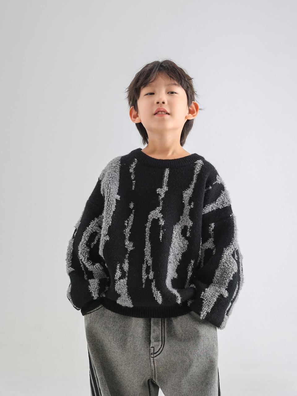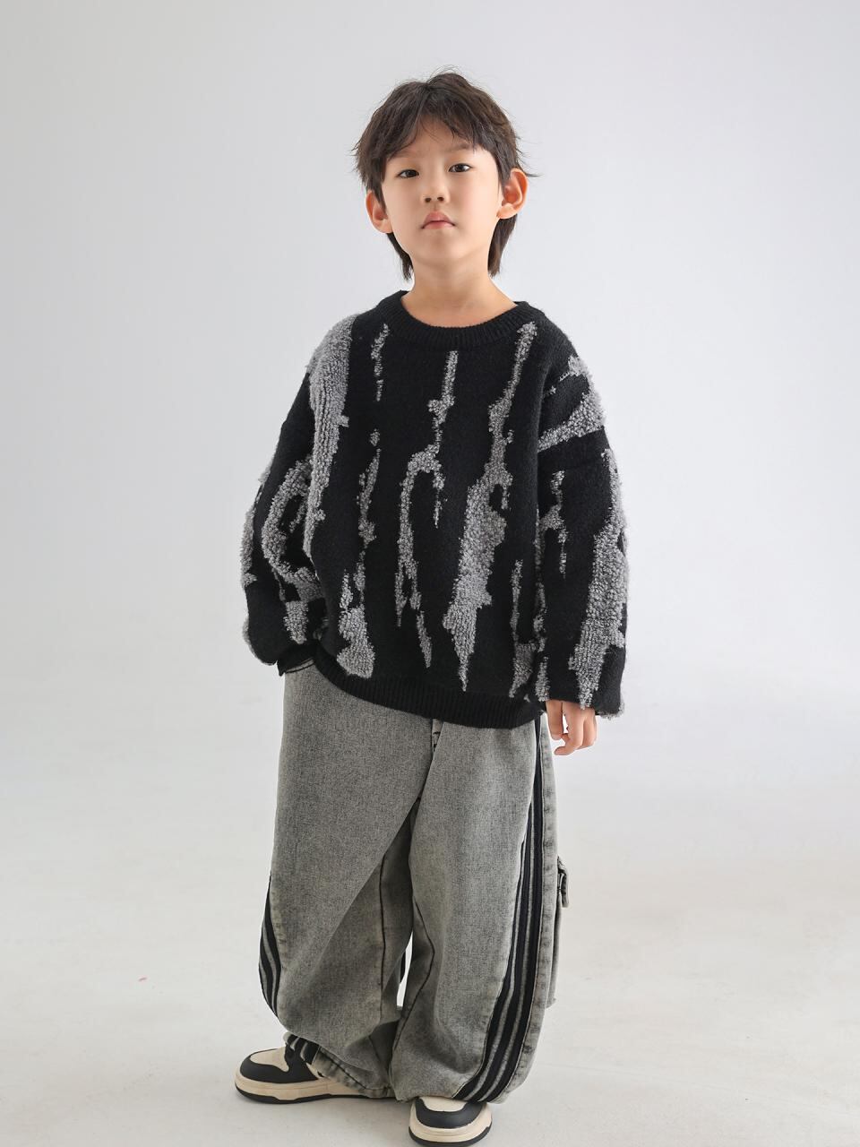 ニット キッズ 男の子 ニットセーター 長袖 丸首 プルオーバー 普段着 部屋着 ボーイズ 伸縮性 柔らかい 秋 ブラック 黒 グレー