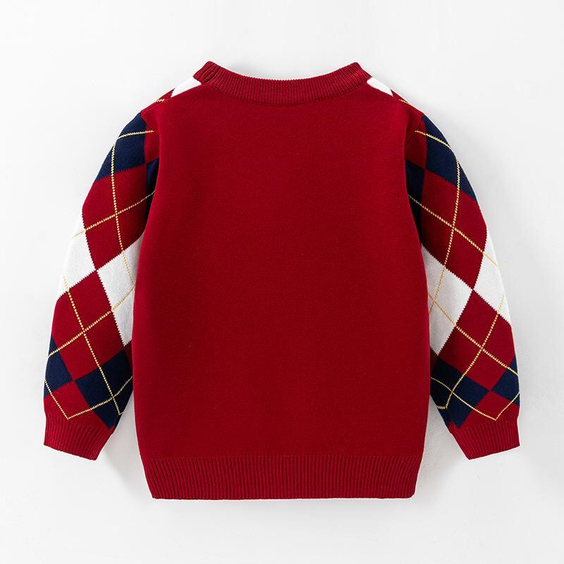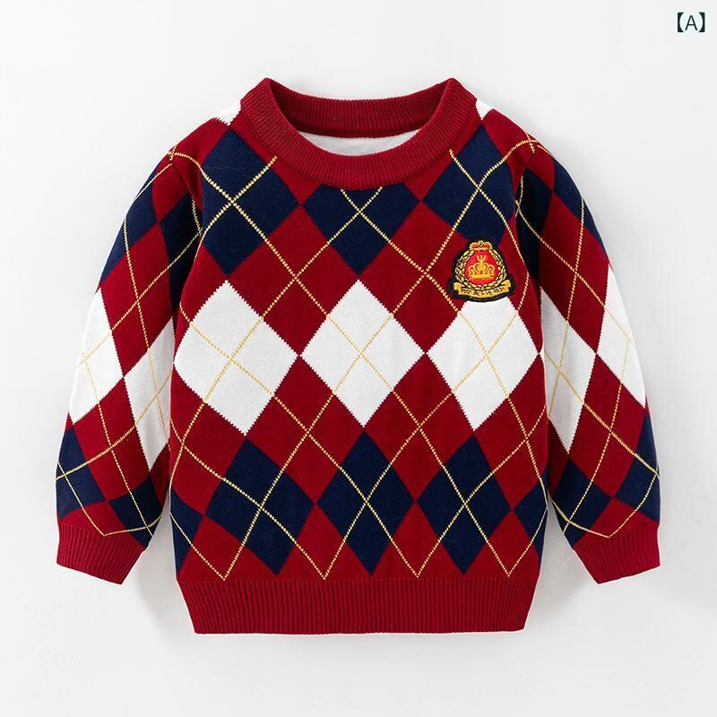 ニット・セーター キッズ 子供服 男の子 学院風 アーガイル柄 プルオーバー 長袖 コットン 秋冬 保温 100cm 110cm 120cm 130cm 140cm 150cm レッド ネイビー