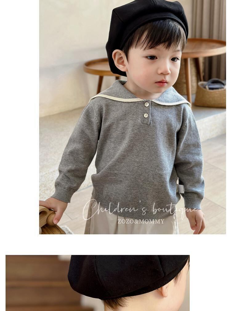 ニット ベビー キッズ 男の子 セーター カットソー トップス 秋冬 子供服 長袖 コットン 海軍風 73 80 90 100 110 120cm