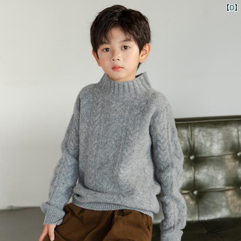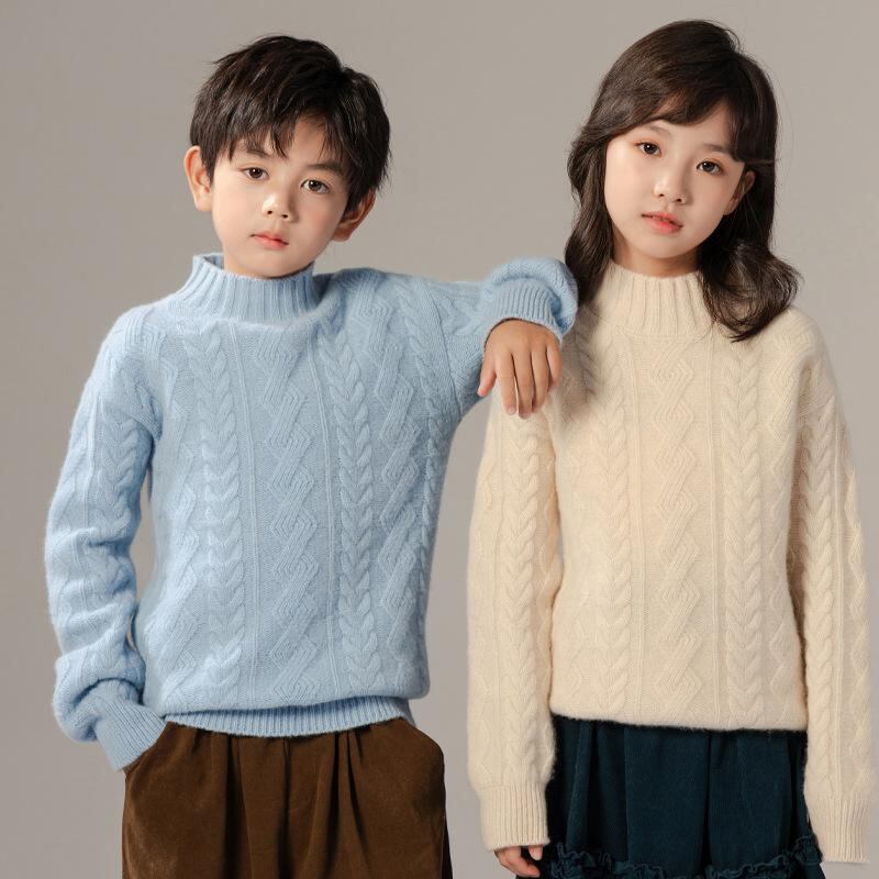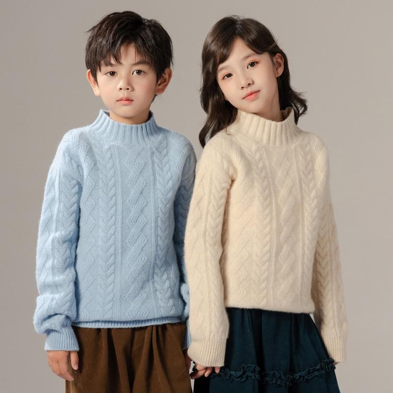 子供用セーター 厚手 ピュアウール ニット トップス 男の子 女の子 ハイネック プルオーバー 秋冬 保温性 暖か 中 крупный детский 青色 水色 ピンク系 グレー 紺色