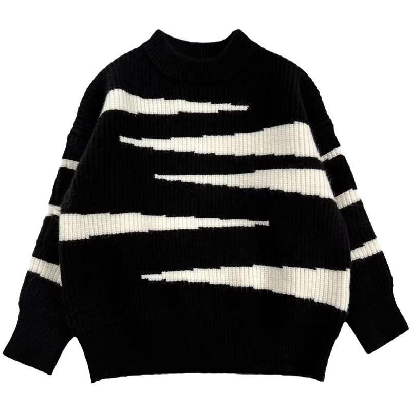 子供服 ニット セーター 男の子 ボーイズ トップス プルオーバー カットソー 長袖 丸首 秋冬 カジュアル 普段着 中学生 小学生 ブラック