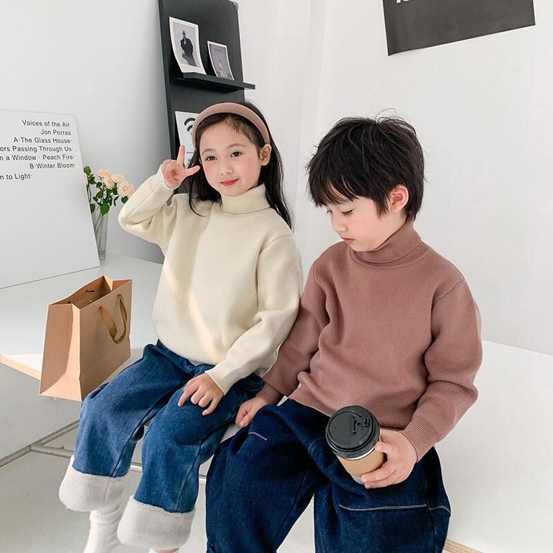 子供服 ニット・セーター ベビー ボーイズ ガールズ 裏起毛 ハイネック 厚手 プルオーバー 無地 長袖 普段着 部屋着 秋冬 あったか 快適