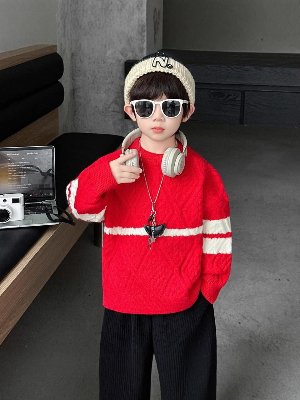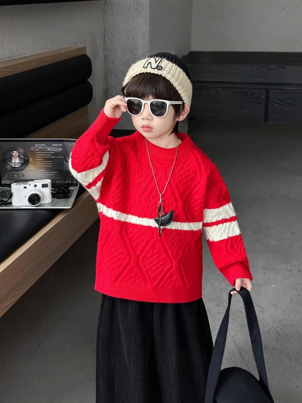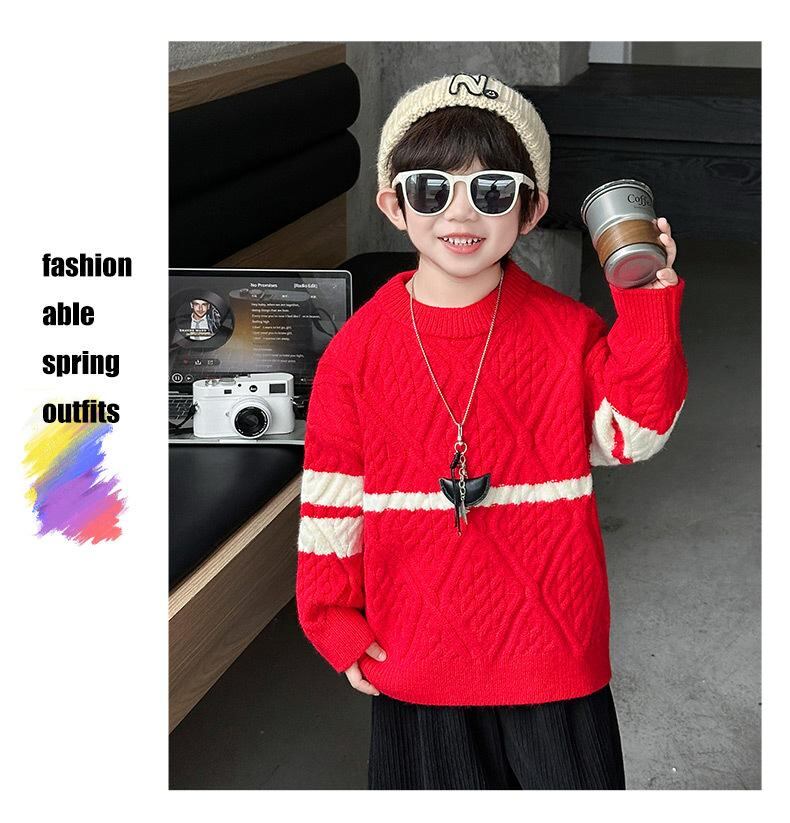 ニット・セーター キッズ 男の子 子供 冬服 ニットセーター 長袖 丸首 普段使い おしゃれ かわいい 伸縮性 あったか レッド系