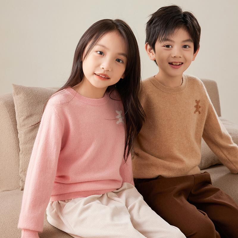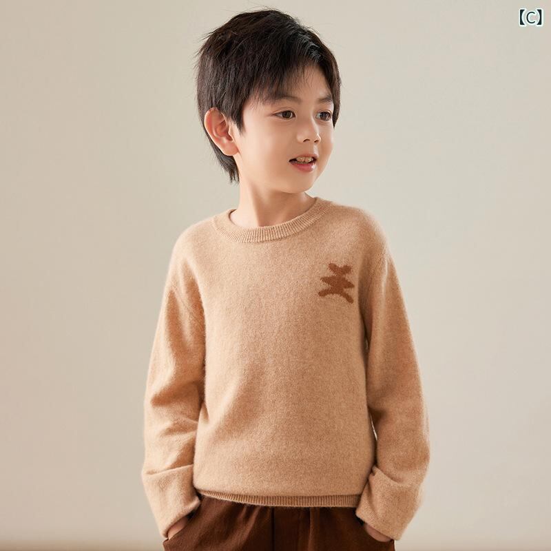 子供服 ニット セーター 秋冬 女児 ウール ピンク 刺繍 クルーネック 丸首 暖かい 防寒 ガールズ