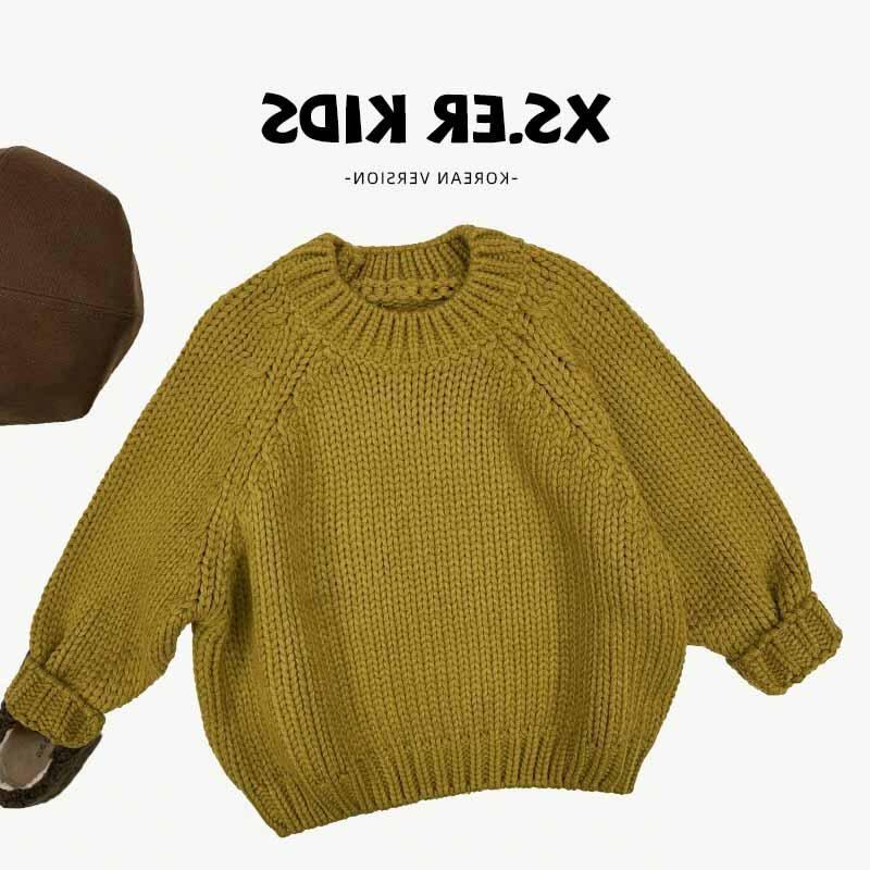 ニット キッズ 男の子 レトロ 韓国風 無地 セーター 秋冬 厚手 子供服 トップス 長袖 普段使い 聚酯纤维 ポリエステル グリーン マスタード 90 100 110 120 130 140 150