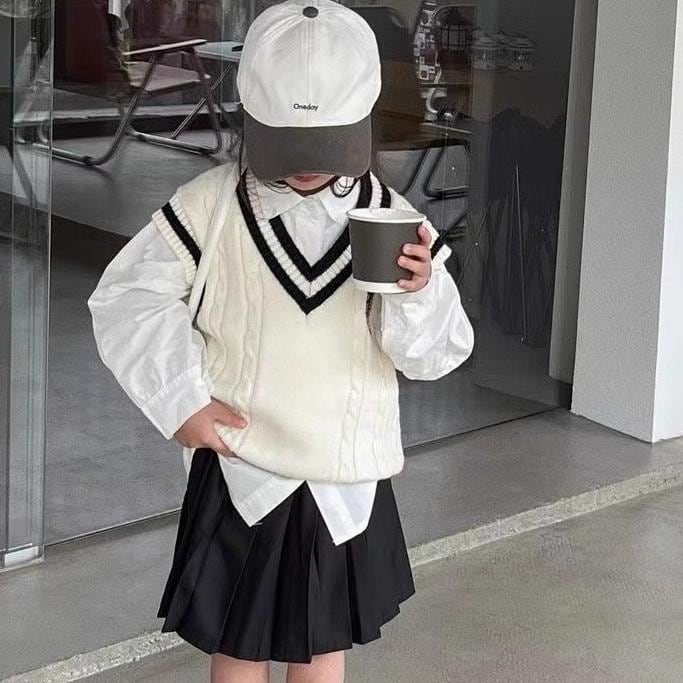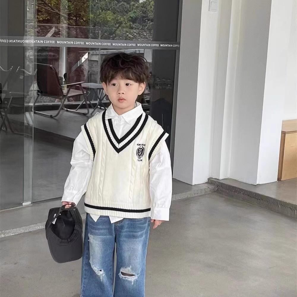 ニット キッズ 男女兼用 子供服 スクールベスト Vネック チョッキ セーター アウター 小学生 中学生 幼稚園 保育園 通園 通学 普段使い 秋冬