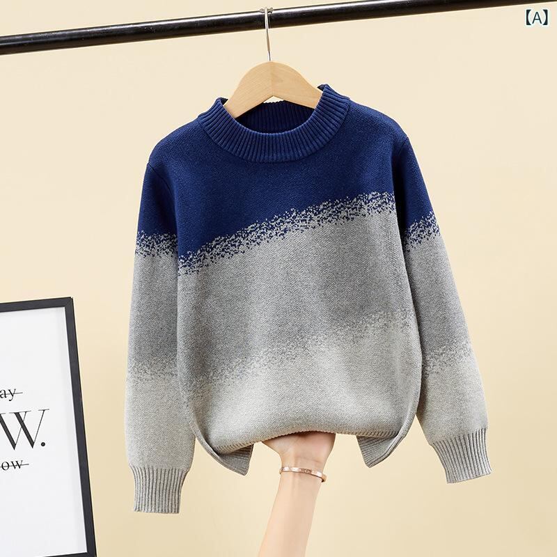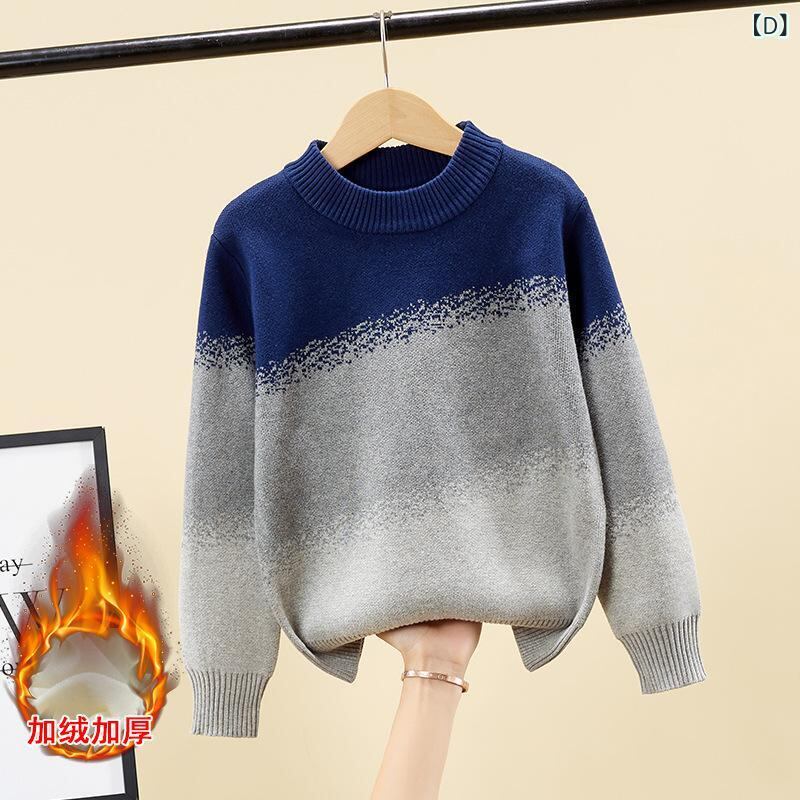 子供服 ニット セーター 男の子 綿 秋冬 厚手 裏起毛 クルーネック トップス 120cm 130cm 140cm 150cm 160cm 170cm