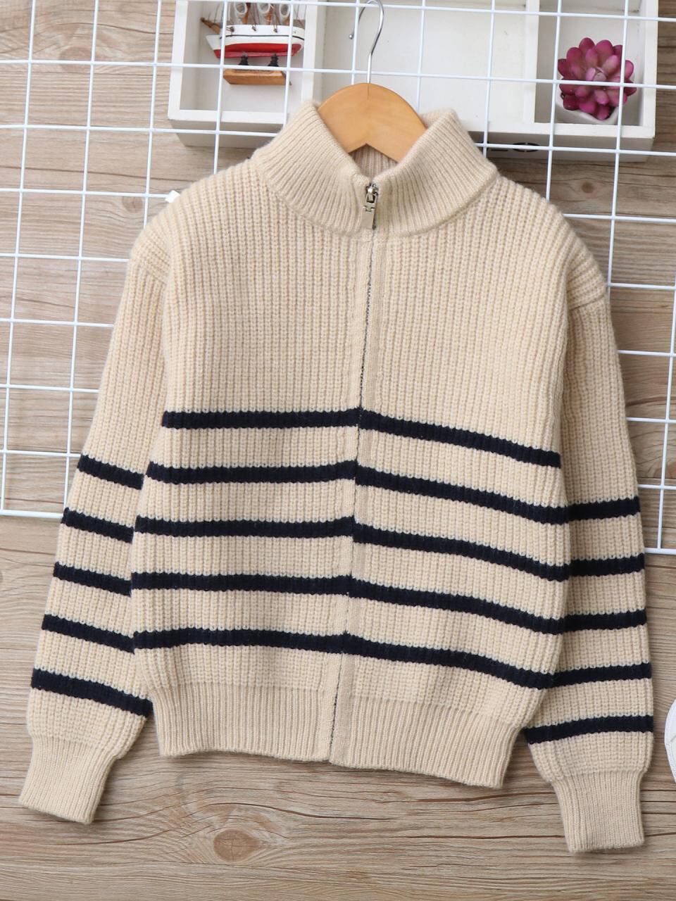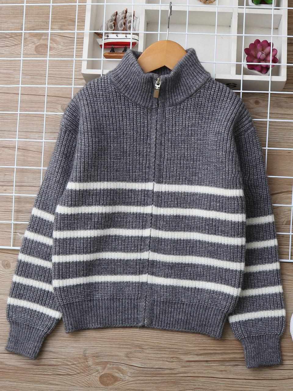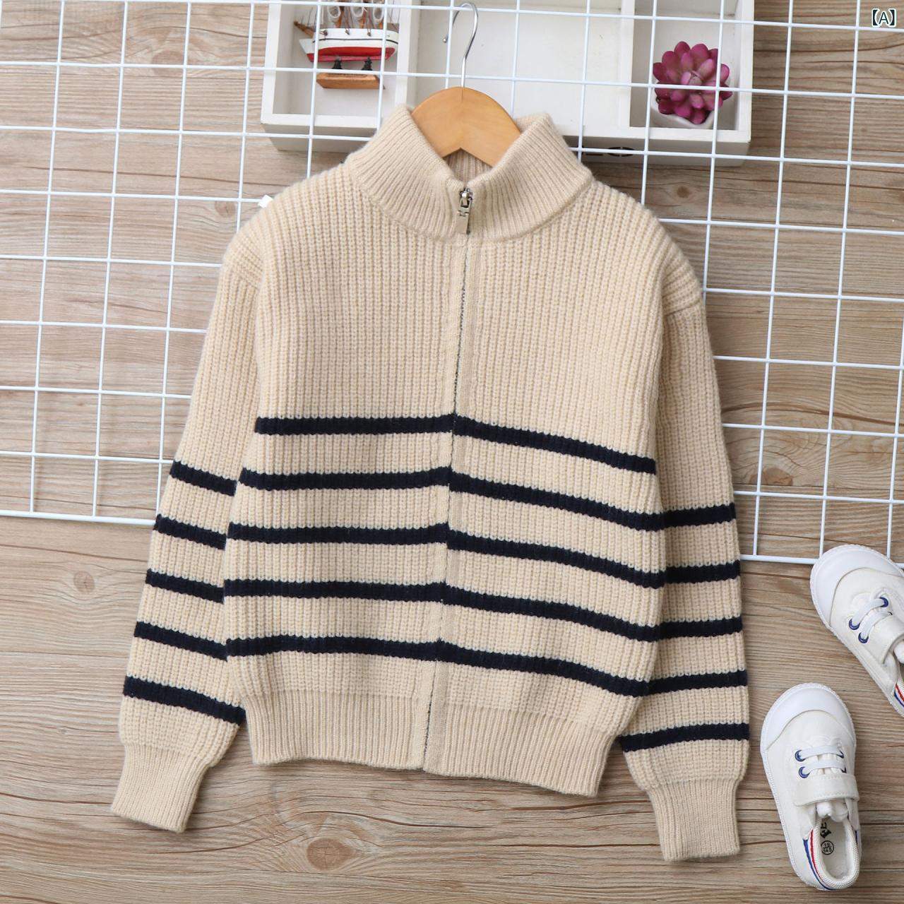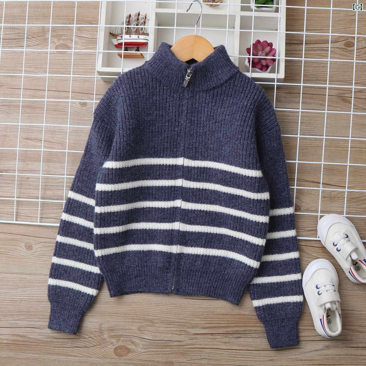 子供服 男の子 ニット カーディガン 秋冬 中学生 ウール 立襟 ストライプ 厚手 130cm 140cm 150cm 160cm 170cm