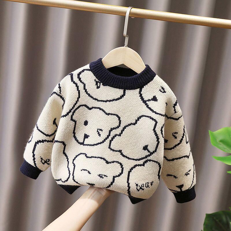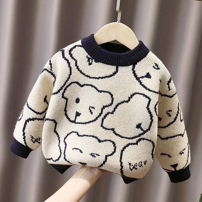 子供服 セーター 男の子 厚手 裏起毛 ニット トップス 秋冬 カートゥーン柄 ラウンドネック 90cm 100cm 110cm 120cm 130cm 140cm 150cm 160cm 恐竜柄 くま柄 かわいい カジュアル