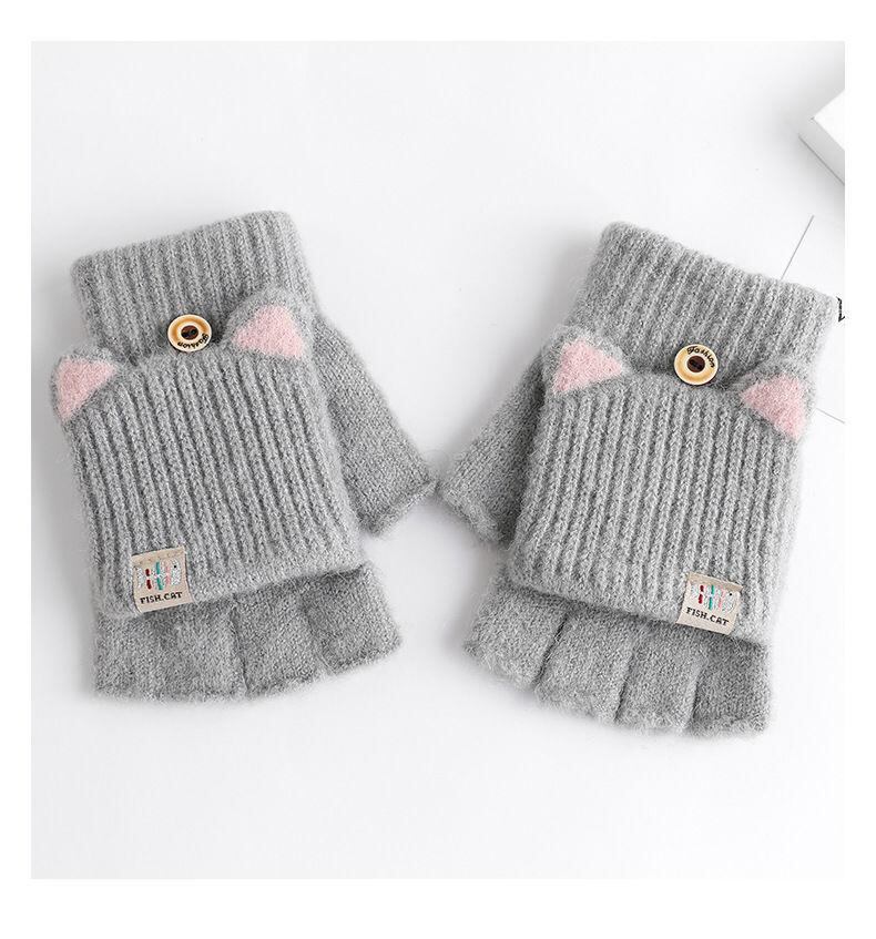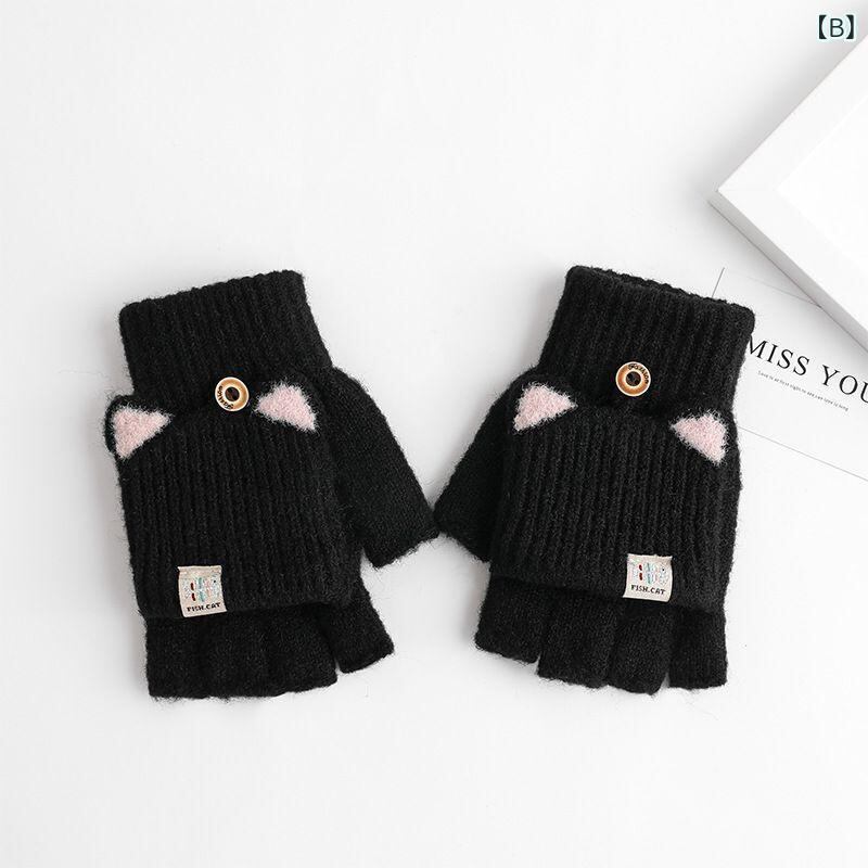 手袋 レディース ガールズ キッズ 冬用 防寒 グローブ ミトン 手袋 ニット 5本指 ハーフフィンガー 指なし あったか 柔らかい かわいい ピンク ブラック グレー ブルー ベージュ