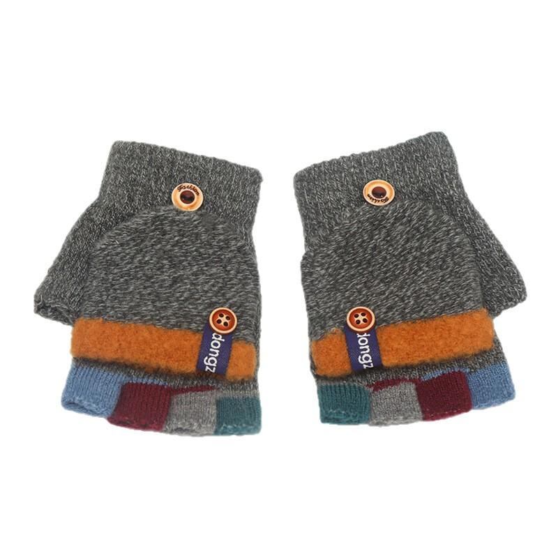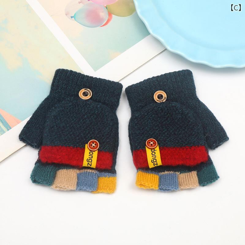 手袋 子供 秋冬 手袋 ストライプ 切り替え 冬 暖かい かわいい ハーフフィンガー 手袋 ジャカード ベビー 手袋