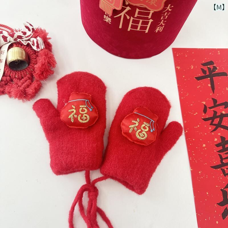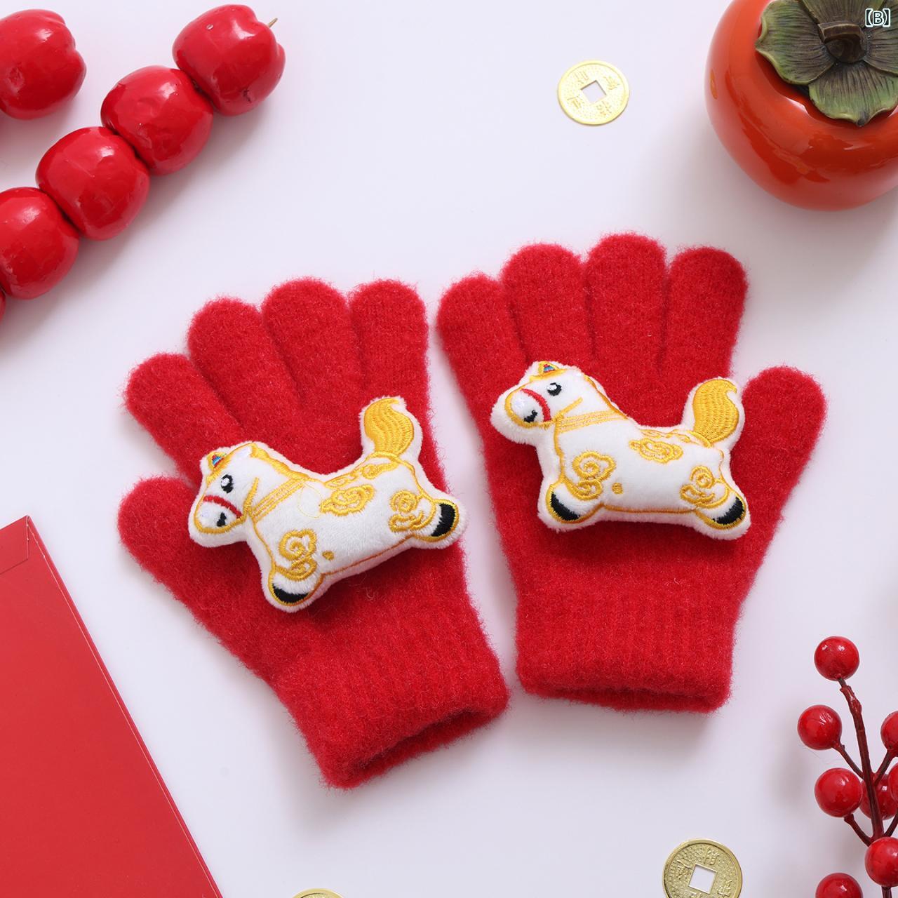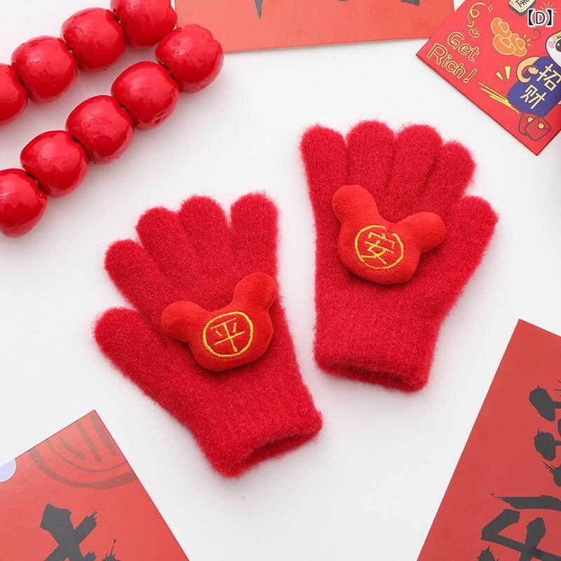 手袋 子供用 ニット手袋 秋冬 防寒 保温 新年 お正月 男の子 女の子 2歳 3歳 4歳 5歳 6歳 7歳 8歳 9歳 10歳 11歳 12歳 赤色