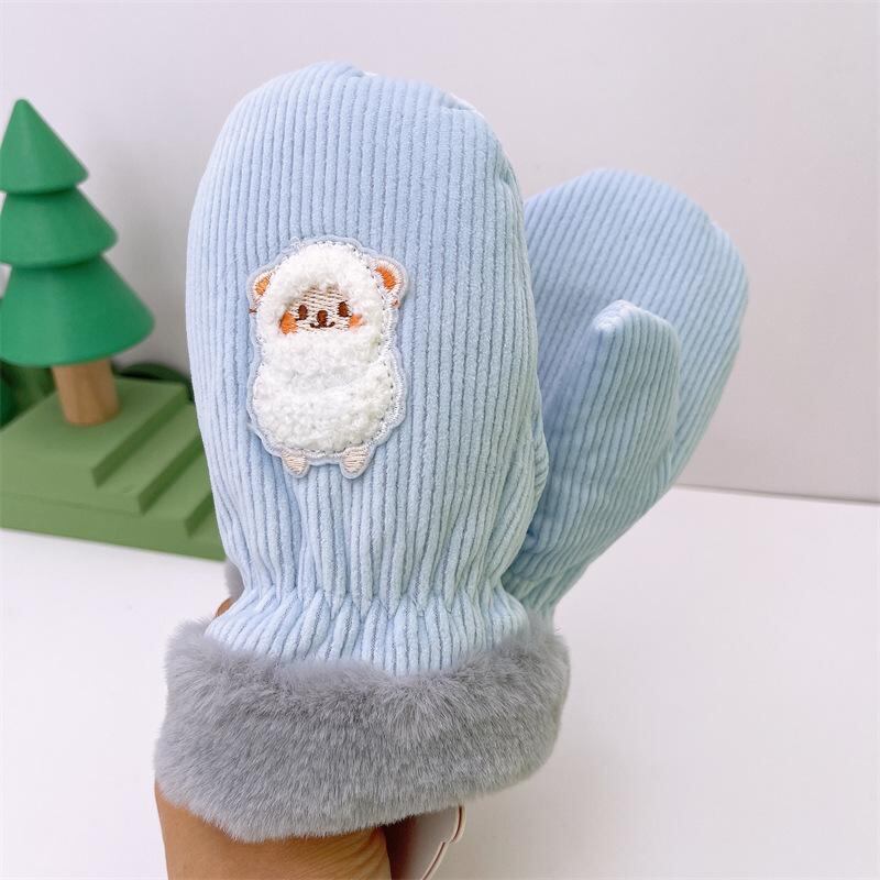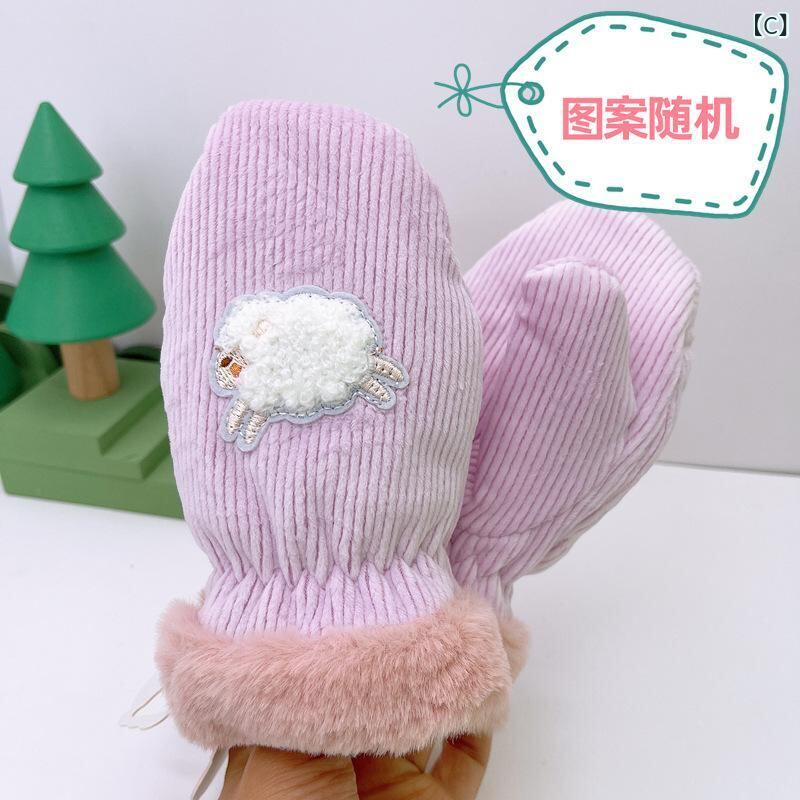 手袋 キッズ 子供用 防寒 手袋 ミトン 紐付き かわいい 刺繍 裏起毛 秋冬 あったか 2歳 3歳 4歳 5歳