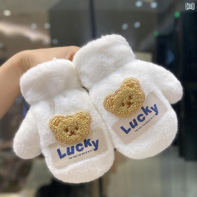 手袋 子供用 冬用 裏起毛 厚手 防寒 男の子 女の子 ベビー ミトン グローブ ひも付き かわいい クマモチーフ 1歳 2歳 3歳 4歳 5歳 6歳